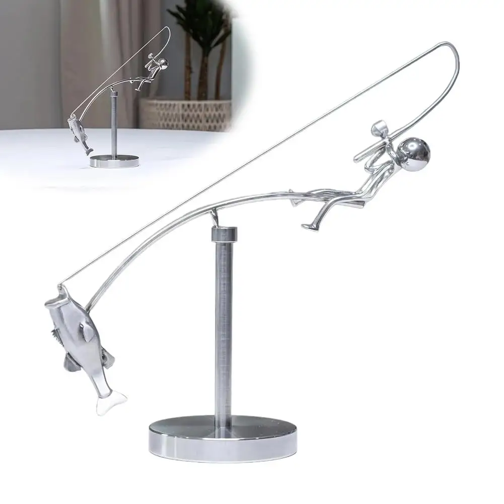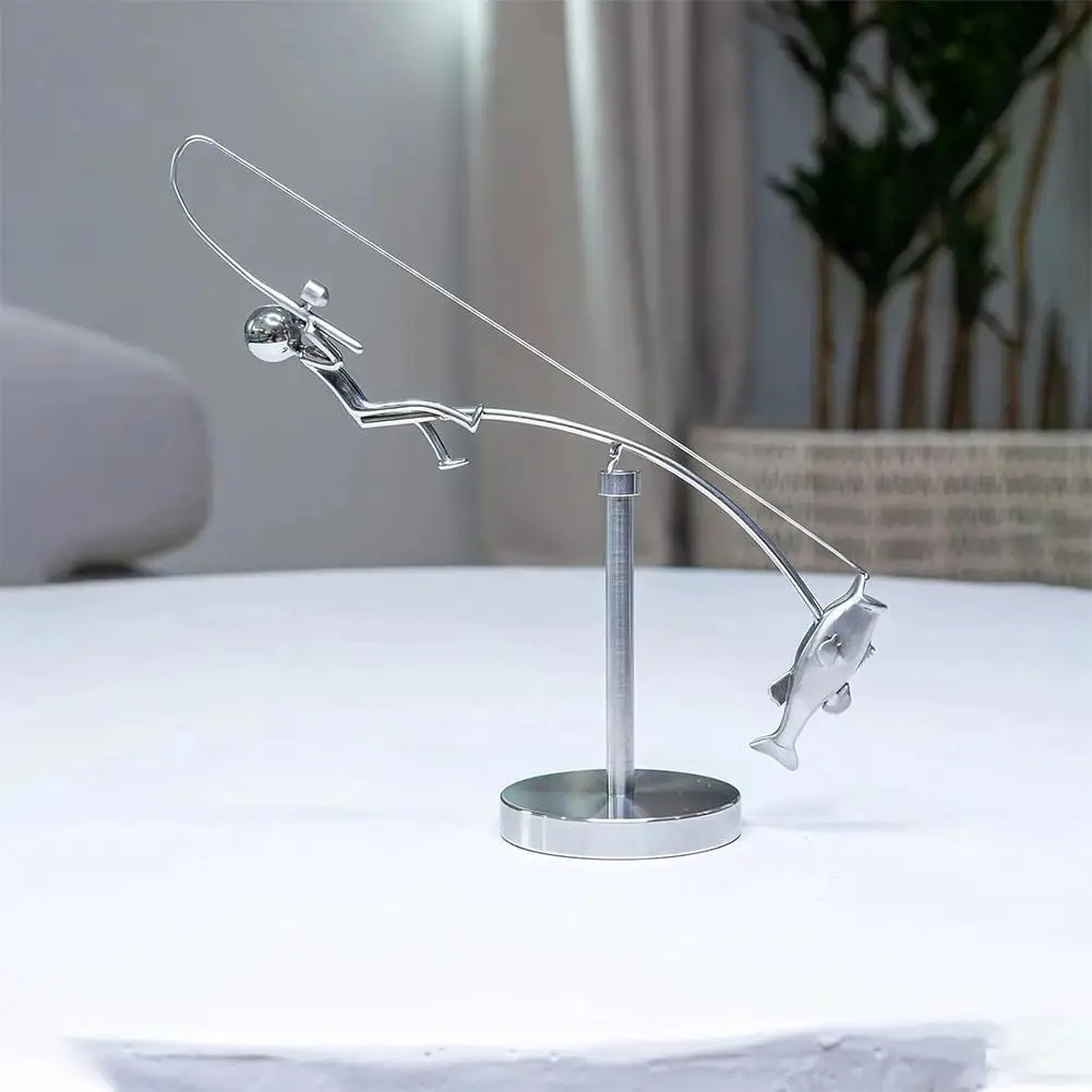 Elegant Dynamic Balance: The sculpture employs meticulous weight distribution to achieve a delicate, floating illusion. The fisherman and fish sway gracefully, transforming scientific precision into a serene yet captivating visual experience.