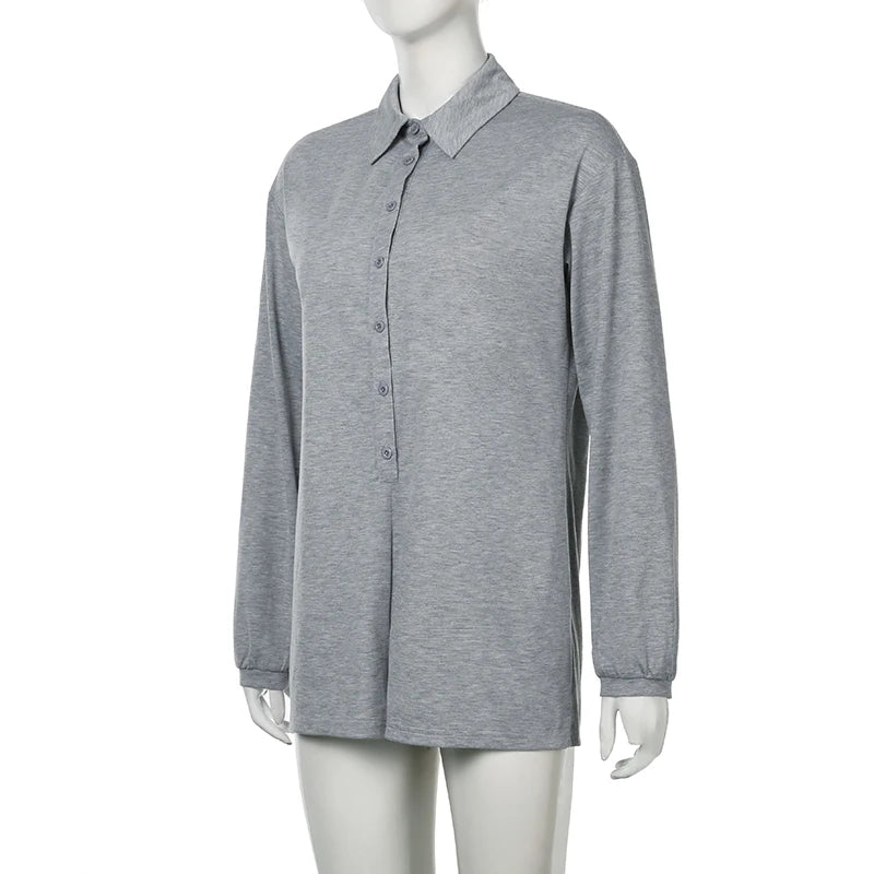 Weekeep Streetwear Grey Loose Rompers Fashion Button Up Full Sleeve Women Playsuits y2k Aesthetic Ladies Solid Outfits Harajuku